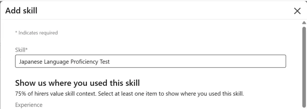 - In Skills, write “Japanese Language (JLPT N2)” for certification specificity