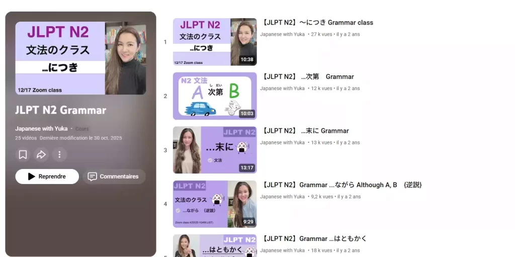 Youtube channels for JLPT N2 grammar